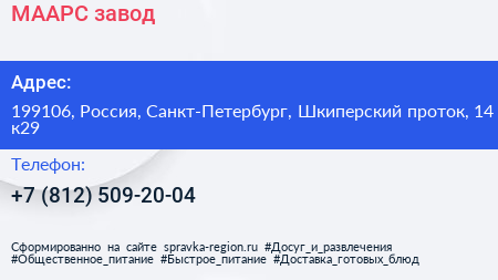 МААРС, завод по адресу 199106, Россия, Санкт-Петербург, Шкиперский проток, 14 к29 в дальнейшем Организация, размещена в следующих категориях: