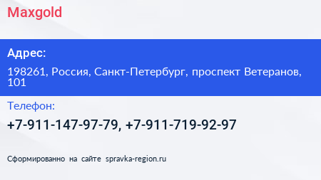 Maxgold по адресу 198261, Россия, Санкт-Петербург, проспект Ветеранов, 101 в дальнейшем Организация, размещена в следующих категориях: