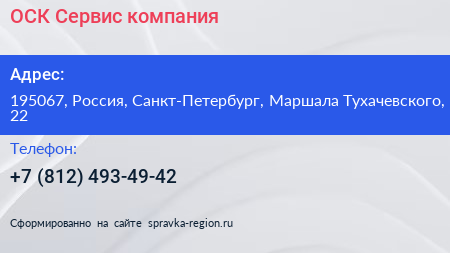 ОСК Сервис, компания по адресу 195067, Россия, Санкт-Петербург, Маршала Тухачевского, 22 в дальнейшем Организация, размещена в следующих категориях: