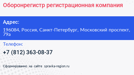 Оборонрегистр, регистрационная компания по адресу 196084, Россия, Санкт-Петербург, Московский проспект, 79а в дальнейшем Организация, размещена в следующих категориях: