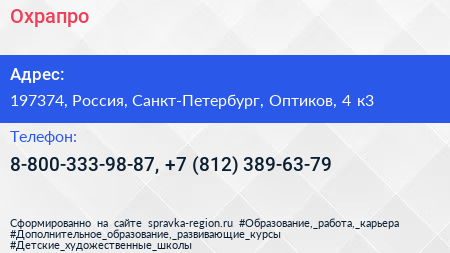 Охрапро по адресу 197374, Россия, Санкт-Петербург, Оптиков, 4 к3 в дальнейшем Организация, размещена в следующих категориях: