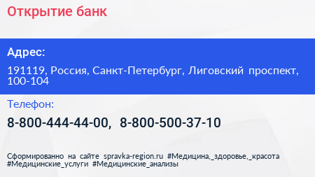 Открытие, банк по адресу 191119, Россия, Санкт-Петербург, Лиговский проспект, 100-104 в дальнейшем Организация, размещена в следующих категориях: