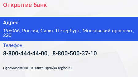 Открытие, банк по адресу 196066, Россия, Санкт-Петербург, Московский проспект, 220 в дальнейшем Организация, размещена в следующих категориях: