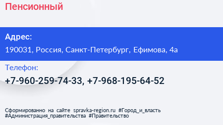 Пенсионный+ по адресу 190031, Россия, Санкт-Петербург, Ефимова, 4а в дальнейшем Организация, размещена в следующих категориях: