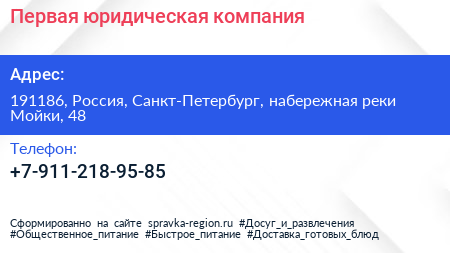 Первая юридическая компания по адресу 191186, Россия, Санкт-Петербург, набережная реки Мойки, 48 в дальнейшем Организация, размещена в следующих категориях: