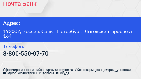 Почта Банк по адресу 192007, Россия, Санкт-Петербург, Лиговский проспект, 164 в дальнейшем Организация, размещена в следующих категориях: