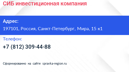 СИБ, инвестиционная компания по адресу 197101, Россия, Санкт-Петербург, Мира, 15 к1 в дальнейшем Организация, размещена в следующих категориях: