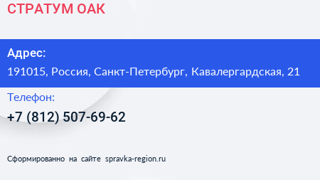СТРАТУМ ОАК по адресу 191015, Россия, Санкт-Петербург, Кавалергардская, 21 в дальнейшем Организация, размещена в следующих категориях: