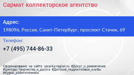 Сармат, коллекторское агентство по адресу 198096, Россия, Санкт-Петербург, проспект Стачек, 69 в дальнейшем Организация, размещена в следующих категориях: