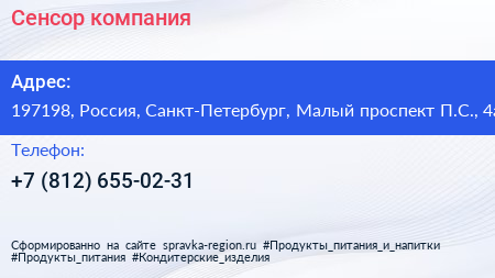 Сенсор, компания по адресу 197198, Россия, Санкт-Петербург, Малый проспект П.С., 4а в дальнейшем Организация, размещена в следующих категориях: