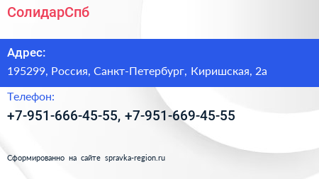 СолидарСпб по адресу 195299, Россия, Санкт-Петербург, Киришская, 2а в дальнейшем Организация, размещена в следующих категориях: