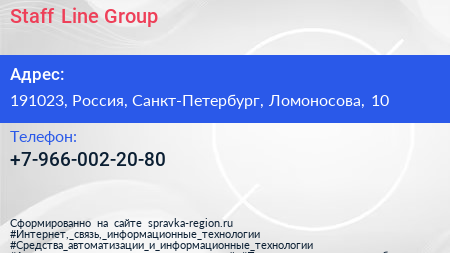 Staff Line Group по адресу 191023, Россия, Санкт-Петербург, Ломоносова, 10 в дальнейшем Организация, размещена в следующих категориях: