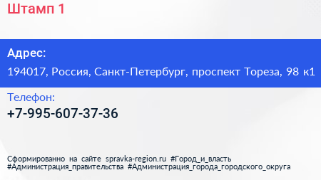 Штамп №1 по адресу 194017, Россия, Санкт-Петербург, проспект Тореза, 98 к1 в дальнейшем Организация, размещена в следующих категориях: