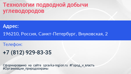 Технологии подводной добычи углеводородов по адресу 196210, Россия, Санкт-Петербург, Внуковская, 2 в дальнейшем Организация, размещена в следующих категориях: