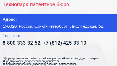 Технопарк, патентное бюро в Санкт-Петербурге