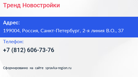 Тренд Новостройки по адресу 199004, Россия, Санкт-Петербург, 2-я линия В.О., 37 в дальнейшем Организация, размещена в следующих категориях:
