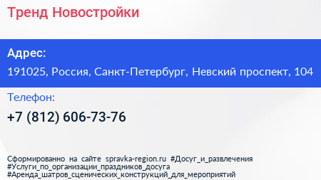 Тренд Новостройки по адресу 191025, Россия, Санкт-Петербург, Невский проспект, 104 в дальнейшем Организация, размещена в следующих категориях: