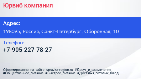 Юрвиб, компания по адресу 198095, Россия, Санкт-Петербург, Оборонная, 10 в дальнейшем Организация, размещена в следующих категориях: