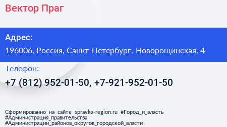 Вектор-Праг по адресу 196006, Россия, Санкт-Петербург, Новорощинская, 4 в дальнейшем Организация, размещена в следующих категориях: