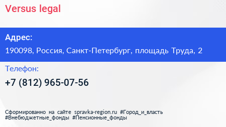 Versus.legal по адресу 190098, Россия, Санкт-Петербург, площадь Труда, 2 в дальнейшем Организация, размещена в следующих категориях: