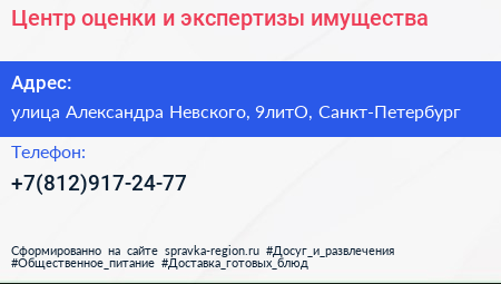 Центр оценки и экспертизы имущества по адресу улица Александра Невского, 9литО, Санкт-Петербург в дальнейшем Организация, размещена в следующих категориях: