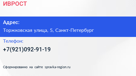 ИВРОСТ по адресу Торжковская улица, 5, Санкт-Петербург в дальнейшем Организация, размещена в следующих категориях: