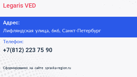 Legaris VED по адресу Лифляндская улица, 6к6, Санкт-Петербург в дальнейшем Организация, размещена в следующих категориях: