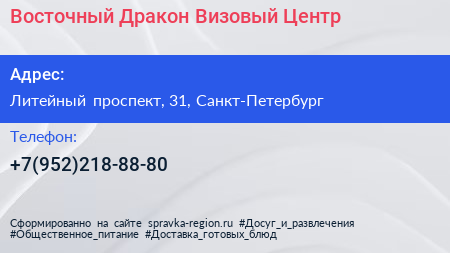 Восточный Дракон - Визовый Центр по адресу Литейный проспект, 31, Санкт-Петербург в дальнейшем Организация, размещена в следующих категориях: