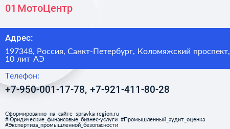 01 МотоЦентр по адресу 197348, Россия, Санкт-Петербург, Коломяжский проспект, 10 лит АЭ в дальнейшем Организация, размещена в следующих категориях: