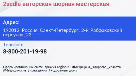2sedla, авторская шорная мастерская по адресу 192012, Россия, Санкт-Петербург, 2-й Рабфаковский переулок, 22 в дальнейшем Организация, размещена в следующих категориях: