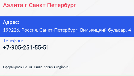 Аэлита, г. Санкт-Петербург по адресу 199226, Россия, Санкт-Петербург, Вилькицкий бульвар, 4 в дальнейшем Организация, размещена в следующих категориях: