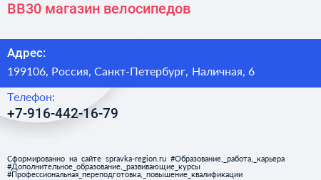 BB30, магазин велосипедов по адресу 199106, Россия, Санкт-Петербург, Наличная, 6 в дальнейшем Организация, размещена в следующих категориях: