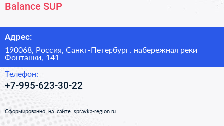 Balance SUP по адресу 190068, Россия, Санкт-Петербург, набережная реки Фонтанки, 141 в дальнейшем Организация, размещена в следующих категориях: