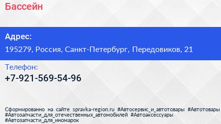 Бассейн по адресу 195279, Россия, Санкт-Петербург, Передовиков, 21 в дальнейшем Организация, размещена в следующих категориях: