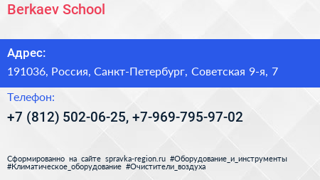 Berkaev School по адресу 191036, Россия, Санкт-Петербург, Советская 9-я, 7 в дальнейшем Организация, размещена в следующих категориях: