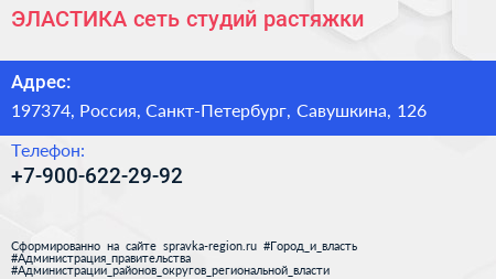 ЭЛАСТИКА, сеть студий растяжки по адресу 197374, Россия, Санкт-Петербург, Савушкина, 126 в дальнейшем Организация, размещена в следующих категориях: