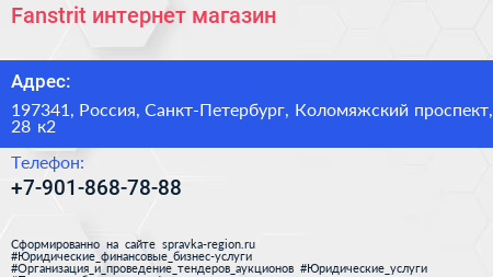 Fanstrit, интернет-магазин по адресу 197341, Россия, Санкт-Петербург, Коломяжский проспект, 28 к2 в дальнейшем Организация, размещена в следующих категориях: