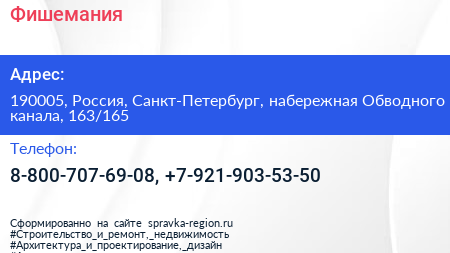 Фишемания по адресу 190005, Россия, Санкт-Петербург, набережная Обводного канала, 163/165 в дальнейшем Организация, размещена в следующих категориях: