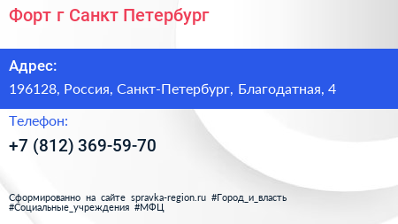 Форт, г. Санкт-Петербург по адресу 196128, Россия, Санкт-Петербург, Благодатная, 4 в дальнейшем Организация, размещена в следующих категориях: