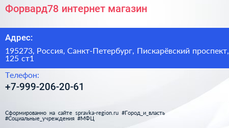 Форвард78, интернет-магазин по адресу 195273, Россия, Санкт-Петербург, Пискарёвский проспект, 125 ст1 в дальнейшем Организация, размещена в следующих категориях: