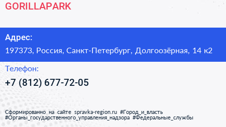 GORILLAPARK по адресу 197373, Россия, Санкт-Петербург, Долгоозёрная, 14 к2 в дальнейшем Организация, размещена в следующих категориях: