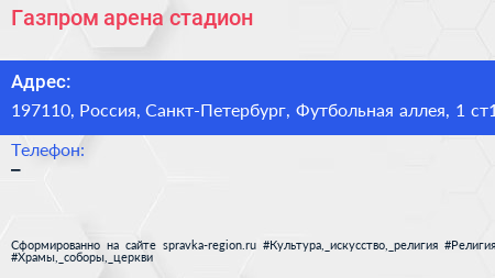 Газпром-арена, стадион по адресу 197110, Россия, Санкт-Петербург, Футбольная аллея, 1 ст1 в дальнейшем Организация, размещена в следующих категориях: