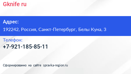Gknife.ru по адресу 192242, Россия, Санкт-Петербург, Белы Куна, 3 в дальнейшем Организация, размещена в следующих категориях: