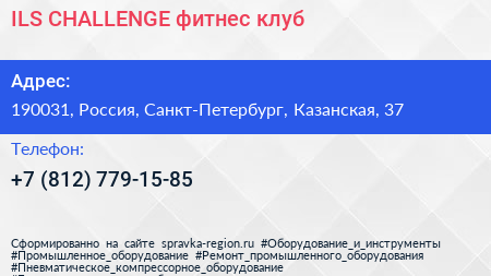 ILS CHALLENGE, фитнес-клуб по адресу 190031, Россия, Санкт-Петербург, Казанская, 37 в дальнейшем Организация, размещена в следующих категориях: