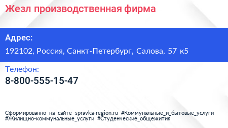 Жезл, производственная фирма по адресу 192102, Россия, Санкт-Петербург, Салова, 57 к5 в дальнейшем Организация, размещена в следующих категориях: