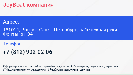 JoyBoat, компания по адресу 191014, Россия, Санкт-Петербург, набережная реки Фонтанки, 34 в дальнейшем Организация, размещена в следующих категориях: