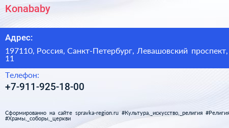 Konababy по адресу 197110, Россия, Санкт-Петербург, Левашовский проспект, 11 в дальнейшем Организация, размещена в следующих категориях: