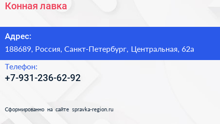Конная лавка по адресу 188689, Россия, Санкт-Петербург, Центральная, 62а в дальнейшем Организация, размещена в следующих категориях: