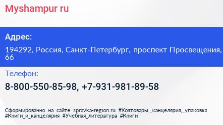 Myshampur.ru по адресу 194292, Россия, Санкт-Петербург, проспект Просвещения, 66 в дальнейшем Организация, размещена в следующих категориях: