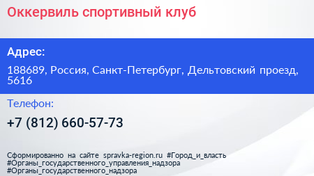 Оккервиль, спортивный клуб по адресу 188689, Россия, Санкт-Петербург, Дельтовский проезд, 5616 в дальнейшем Организация, размещена в следующих категориях: